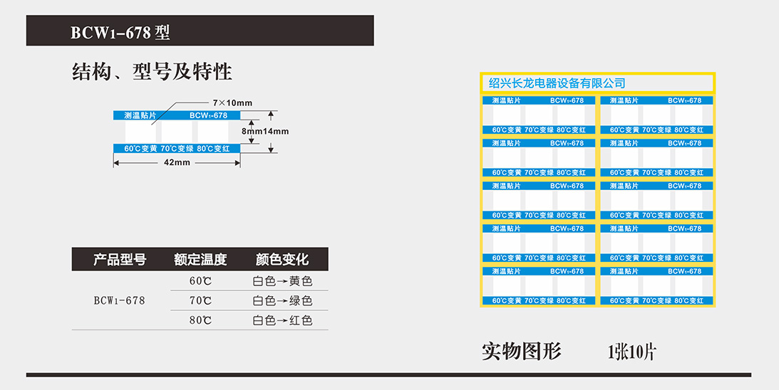 BCW系列測溫貼片,廣泛應用于變電所母線的連接部位,用來監視母線連接處及電氣設備外殼的溫度。且所變顏色具有反光顯示功能。