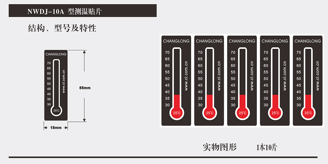 2.由于考慮到變色測溫貼片使用現場的復雜性,當變色測溫貼片貼在監溫部位后,在正常溫度、正常環境下使用,可用3~4年。